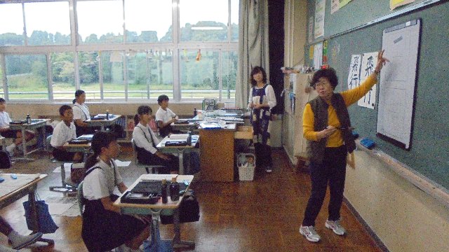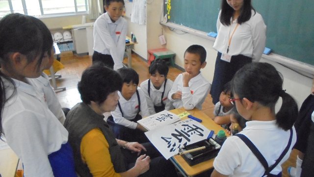 文化の秋です。習字の練習に熱が入ります。八野の城村先生にご指導いただいています。おかげでみんなめきめきと上達します。