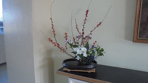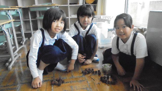 休み時間こんな場面にあいました。もう一枚の写真は今週の玄関です。細川さんいつもありがとうございます。