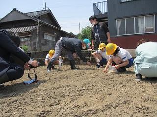 3,4限目に3,4年生が味噌づくりのための大豆を植えに瀬戸町の畑に行きました。毎年お世話になっている髙﨑武義さん、髙崎政勝さんに今年もご指導いただきました。子どもたちは真っすぐな列になるよう気をつけながら植えていきました。次は、土寄せの体験を行う予定です。収穫する日が楽しみです。