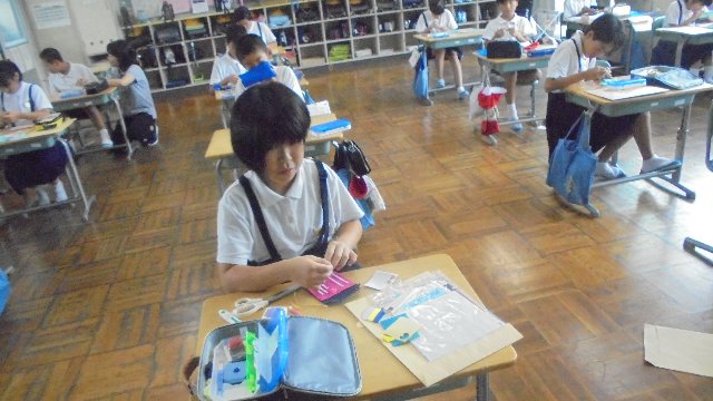 フェルトを使い、手縫いでいろいろな小物作りをしました。器用なものですね。ティッシュ入れ、小銭入れ、ペンケース、中には財布を作る子もいました。
