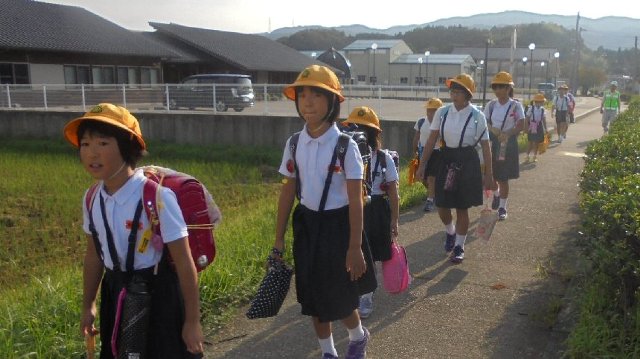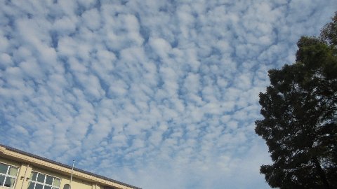 連休はいかがお過ごしでしたか。さわやかな秋風が吹く中いつものように宝達山をバックに集団登校です。空を見上げるとこんなきれいな雲が・・・「うろこ雲?」秋ですね。