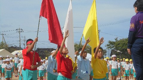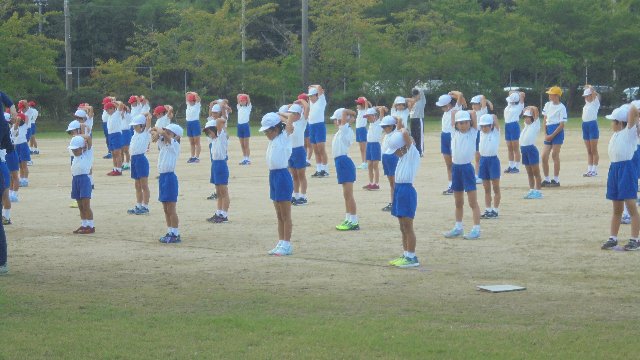学校に戻ると大海小でも運動会の練習です。人数は少ないですが、熱気で負けていません。土曜の天気が気になります。みんなの熱意で晴らしたいですね。