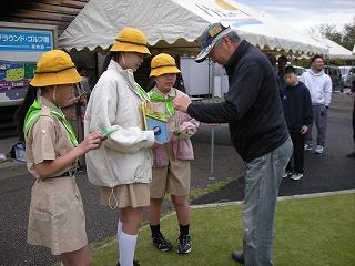 高松グラウンドゴルフ場に伺い、大会前に5年生が緑の募金活動を行いました。活動に参加した5年生の子どもたちは積極的に募金の呼びかけを行っていました。大会参加者の皆様にはたくさんの募金、励ましの声をいただきました。5年生の皆さん、保護者の皆さん、募金活動への参加おつかれさまでした。かほく市グラウンドゴルフ協会の皆様には、募金活動にご協力いただき感謝します。誠にありがとうございました。