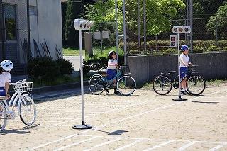 2,3限目に自転車安全教室を行いました。津幡警察署や交通安全推進隊、PTA環境整備部の方々に指導していただきました。まず映像を視聴し、その後、運動場で自転車に乗って練習しました。PTA環境整備部の方々には、自転車の整備点検もしてもらいました。道路上でも交通ルール、マナーを守って安全に乗ってほしいと思います。