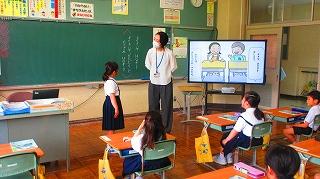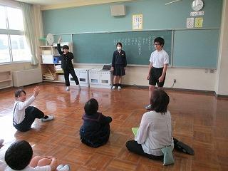 ☆1年生:国語「よくきいて、はなそう」 お互いに質問しながら、言葉のやり取りを楽しみました。こども園の先生方が1年生の様子を見に来てくださいました。しっかりと勉強している姿に感心していました。