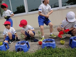 ☆2年生:生活科「野菜の苗植え」 これから元気に育ってほしいですね。