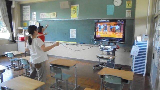 なぜかテレビに向かってダンシング・・・運動会の準備でした。ダンシングヒーロー!?