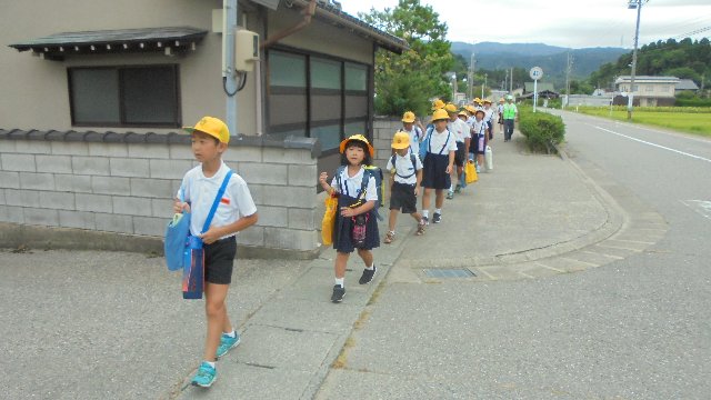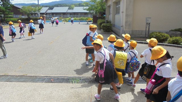 全校登校・・・帰りも集団下校。おーっ、手にはとてつもない大物が・・・1本で家族みんなが食べられます。
