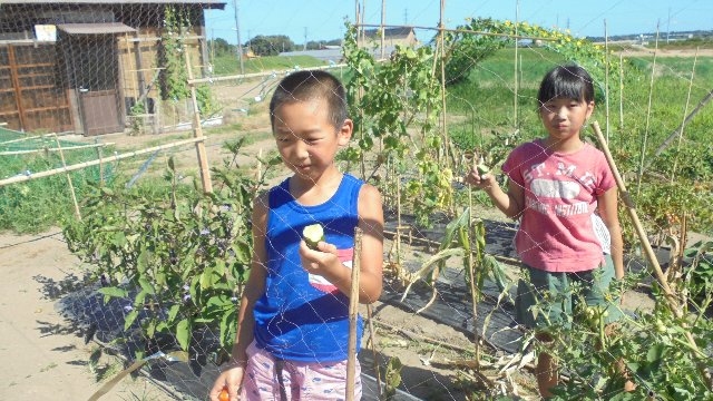 ご褒美にキュウリを2年生の畑からいただきました。すごくみずみずしくて美味しかったです。あんこときなこにも新鮮な草をやっています。プランターはもっとたっぷりやって欲しいと伝えました。どうしても上からちょろちょろシャワーになってしまいます。