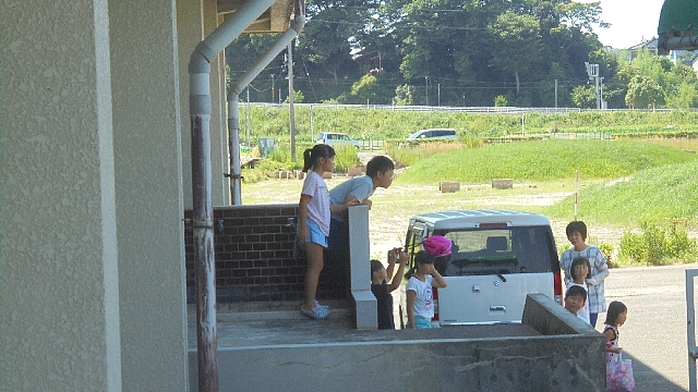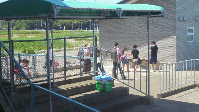 こんなに暑いと子どもたちの外出も少なくなり、プールに来なくなるかと思いましたが、そんなことありません。今日の一番乗りは宇野さんと中田さんでした。開門を今かと待っています。