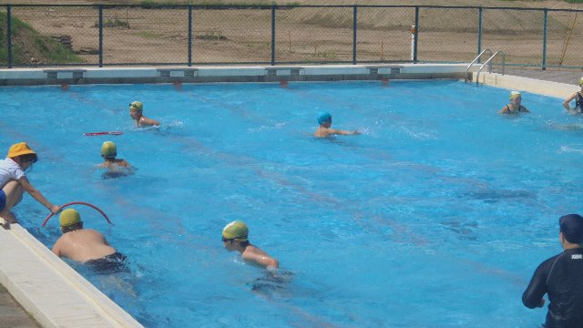 午後はプールで元気良く、ビデオやタブレットを持ち込んで自分の泳ぎ方を見ながらの学習でした。