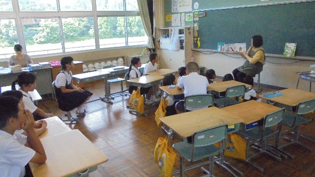 2018年7月9日 12時00分 月曜は田中司書による教室巡回読み聞かせです。今朝も楽しそうな本を読んでいました。聞く方も真剣、どんなお話だったのでしょうね。