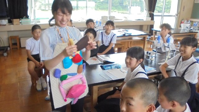 浜野養護教諭とコラボです。理科室には人体模型がたくさんありますが、これは100倍分かりやすいですね。すべて手作りだそうです。もちろん保健指導にも活躍しています。