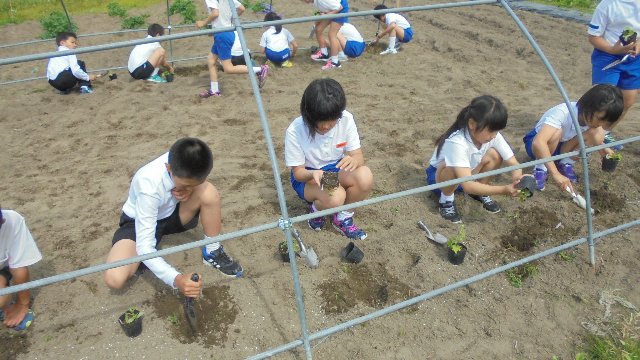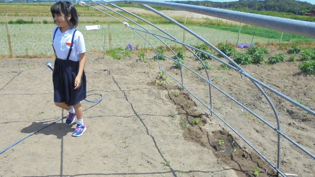 学級園のコンディションが悪く、たなもなかなかたたないまま昨日まで来ました。小さな鉢の中で植え替えを待っていたヘチマを大きな畑に。さっそく水やり当番も忘れず。