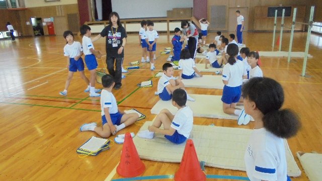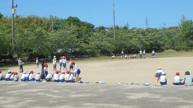 毎年、大海っ子の体力が十分ついているか、いろいろな種目で記録を測定しています。先日は、中の種目、今日は好天の下外でボール投げなどしました。好記録続出!?