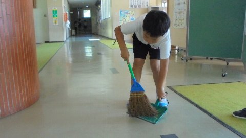 本当に大海っ子はそうじが上手です。低学年のうちから床拭きだけでなくほうきはきやちりとりの扱いまで。