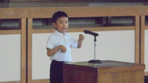 一つ目は、西田幾多郎博士記念話し方大会の代表、2年生中田さん。もう一つは器械運動交歓会に出場の4年生のみなさんです。緊張の中でしたがとっても上手にできていました。本番もこの調子でね。