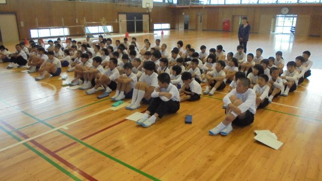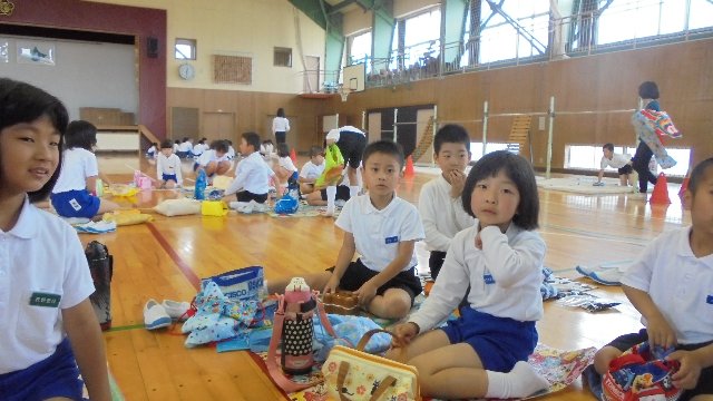 なかよし遠足、あいにくの雨で校内を使ったクイズラリーになりました。西山遺跡には行けなかったけど、体育館で敷物をひいて弁当を食べるなど十分楽しみました。活動の各所で異学年交流のほほえましい姿が見られました。