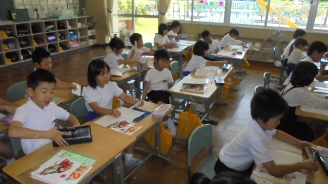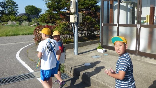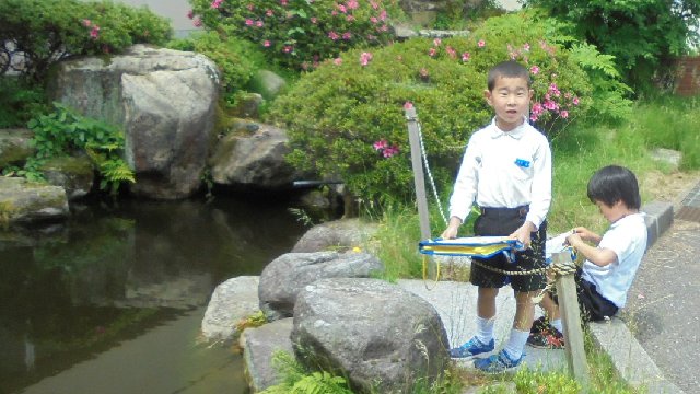2018年5月29日 13時05分 1年生が探検バックをぶら下げ、好天の外へ出かけていきます。短時間に観察できていました、すばらしいですね。ウサギグループ、・・・生きものを見に出かけたのでしょうか。聞いてみて下さいね。メダカも動きが活発になり、えさを盛んに食べるようになってきました。
