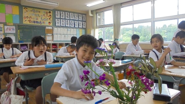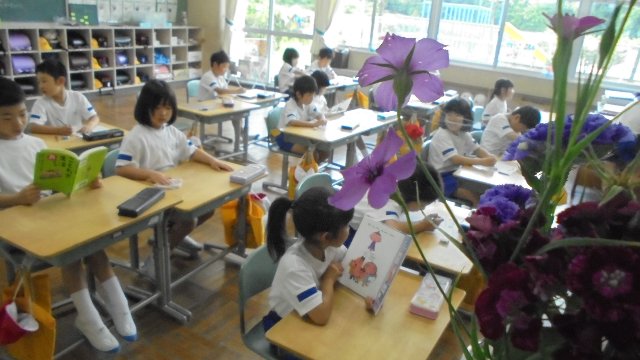 学習環境にうるおいがありますね。来週、花を持ってきてくれる子がいるといいな。