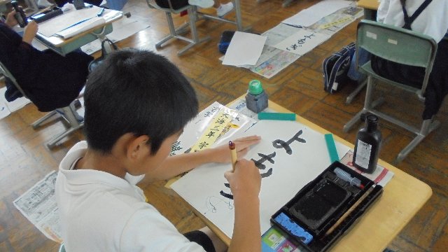 うまく書けていますね。よく見ると紙にうっすらお手本が印刷されています。こんなのなら自信を持って筆を運べますね。