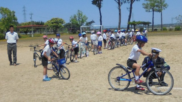 家から自転車を運び、自転車安全教室が開かれました。今年の3.4年生は自転車の運転が上手だとほめられました。今日習ったこと,練習したことをしっかり守って交通事故に気をつけましょうね。