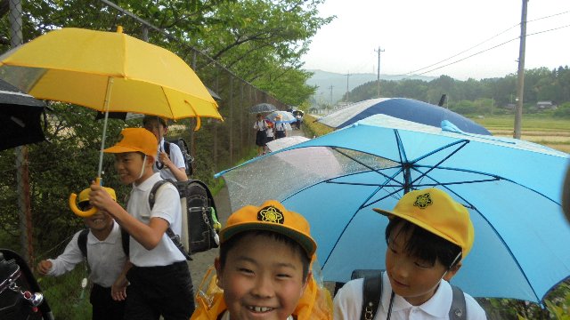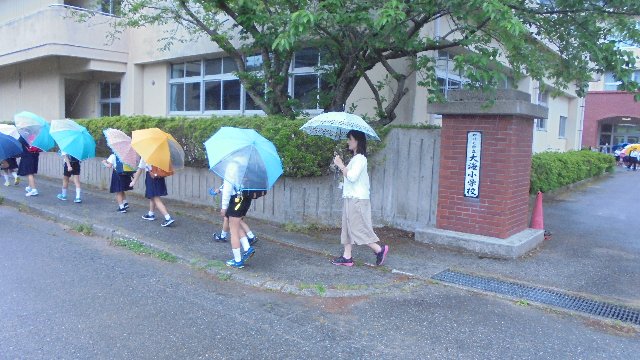 学校では、登下校時子どもたちの安全確保のためにパトロールをしています。昨日は小雨の中、サル出没に備え下校の見送りをしました。途中安全ボランティアの方々が迎えに来てバトンタッチ、地域と連携して子どもたちの安全に気を配れるので安心です。学校では今週いっぱい、とりあえず外遊びを控えるようにしています。ご理解下さい。