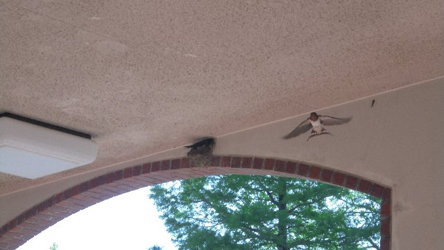 子どもたちが玄関で上を見上げています。ツバメが巣を作っています。よりによって一番にぎやかな場所で・・・去年はにぎやかすぎて巣をあきらめてしまった場所です。今年はどうなることか・・・。