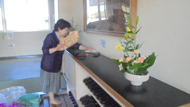 隣の職員玄関では今週も細川さんが生け花を。ありがとうございます。今週使われた花の中に除虫菊がありました、懐かしいですご存知でしょうか。