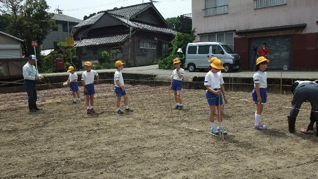 報告が遅れましたが、今年も大海小学校3年生による「大海味噌」づくりがスタートしました(こちらにくわしく)。まず原料の大豆を入手するために畑に大豆の種を植えました。今年も指導は瀬戸町の髙﨑ご兄弟です。よろしくお願いします。