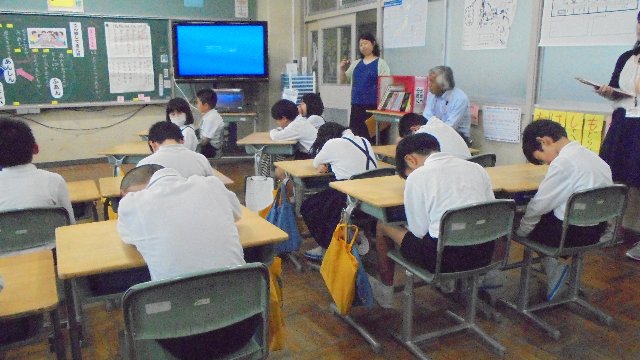 今週は、3年生の教室の道徳授業を教職員全員で参観し、授業研究を深めました。主題は「みんなのクラス」です。どんな道徳的価値を学んだのでしょう、子どもたちに尋ねて見て下さい。写真はみんなうつむいていますね?