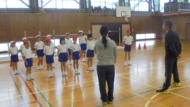 ゲストティーチャーの西田パレット体育指導員にも指導に加わっていただきます。冬にも指導していただいているので心強いです。4年生、けがに気をつけて上手になって下さいね。