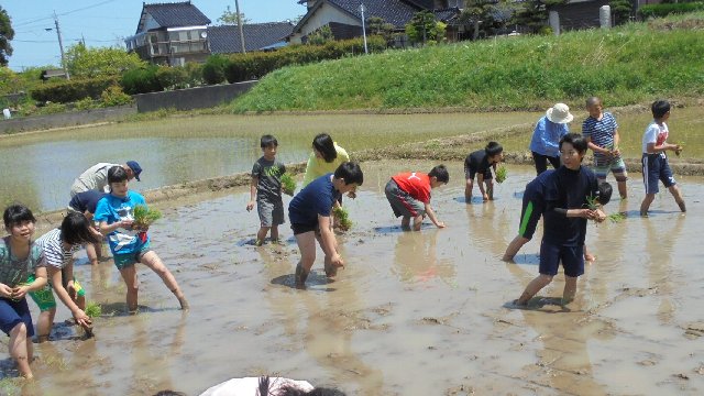先週末は、五月晴れの中5年生が今年も田植えをしました。土曜の朝刊に写真付きで報道されました。今年だけ工事の関係で学校から離れた場所になってしまいましたが、家がすぐそばだという子どもたちもいます。近所の方もたくさん応援に来て下さいました。ありがとうございます。