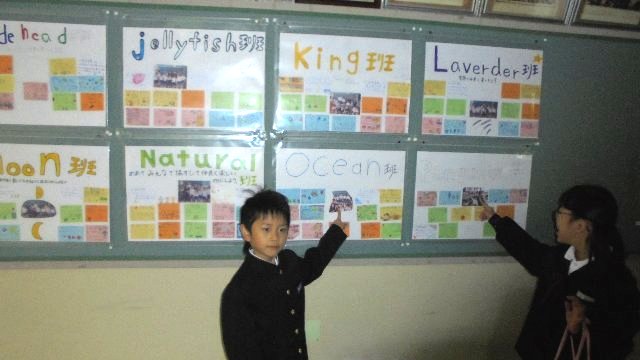 異学年交流グループの活動が始まっています。去年からグループの名前が英語になりました。(外国語教育の先取り?)今年の名前が決まりました。I~Pまでを頭文字にする班名です。発表されて掲示してあります。よく考えてあります。うまく考えてあります、びっくり。お子さんの班は・・・難しいかな。