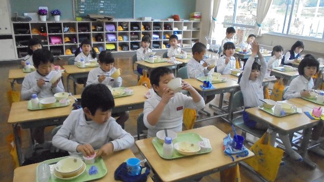 どこのクラスも楽しく残さず食べています。さすが、大海っ子!準備も素早いです。