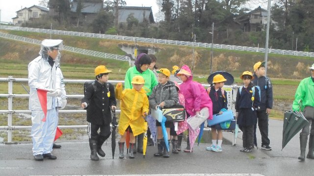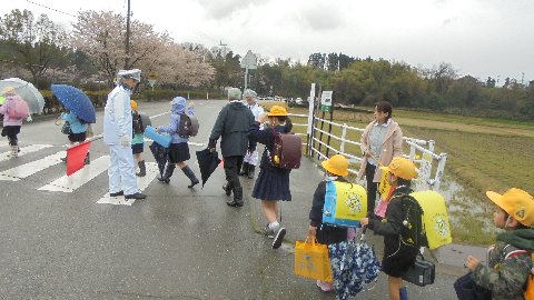 朝の登校、頑張って歩いています。今日も安全協会、推進隊のみなさんが横断歩道の渡り方を指導して下さいました。ちょうどパトロールカーもやってきました。ありがとうございます、地域の方に見守られて育っている大海っ子です。