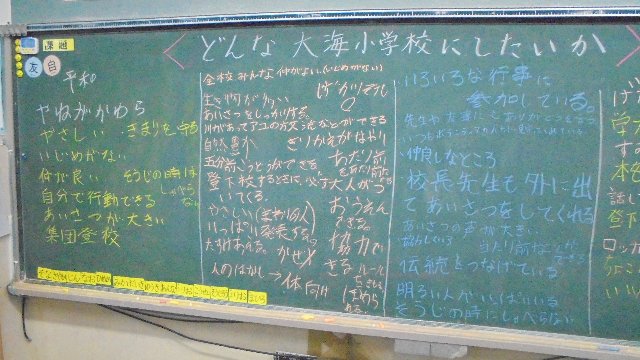 このあとどんな学習につながっていくのか楽しみです。読んでみると、大海小にはたくさん良いところがあるのですね。それを一番知っているのが6年生なんですね。