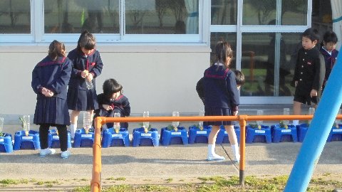 つくしがいっせいに現れ、あっというまに伸びます。1年生の育てるチューリップもたくさん咲いています。昨日はほんとうに暖かかったですね。チューリップは入学式まで頑張って咲き続けて欲しいです。