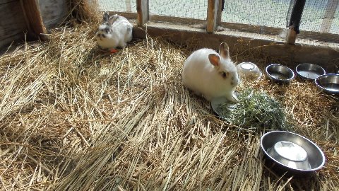 2018年4月1日 10時33分 今日は春休みの日曜日、こんな日もウサギの飼育当番をしてくれます。今朝は、安奈さんがお父さんとランニングしながら学校へ来てくれました。それもニンジンなどの野菜を持って。ありがとう。親子で活動、とってもすばらしいことです。