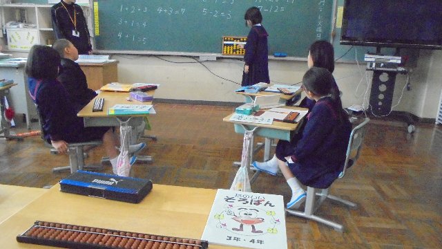 上手に計算していました。家にもあると言う子もいて、うれしそうに話してくれました。昔は一家に一台?必ずありましたよね。世の移りですね。