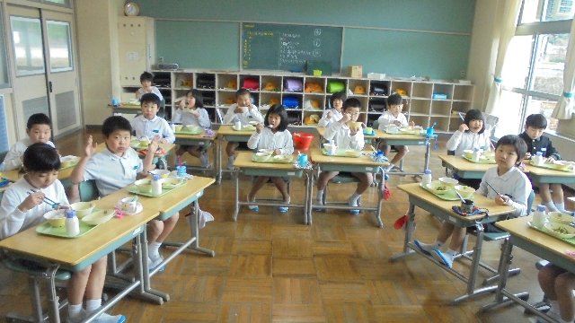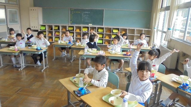 平成29年度の終了、大掃除をしています。静かです。校内が無人になったかのような静寂の中掃除時間が過ぎていきます。こんな良い伝統を来年度も続けていってほしいものです。5限目は修了式、こんな大海小の良いところをたくさんほめて1年を締めくくります。写真は給食の様子です。今年1年残さなかった子に手を挙げてもらいました。