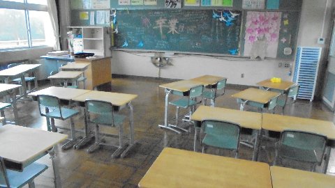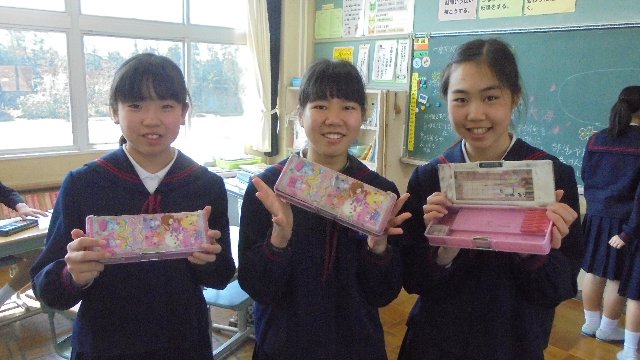毎日にぎやかだった6年生の教室はごらんのとおり閑散としています。毎日にぎやかな声が響いていたのがうそのようです。筆箱を持った写真は・・・卒業前に写したものです。次回説明しますね。