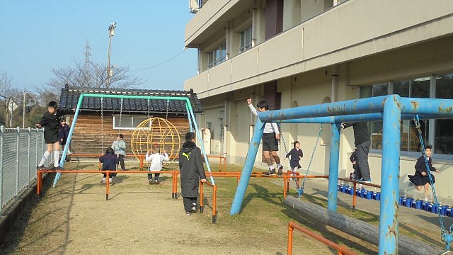 今朝も朝から外遊びでみんな元気に活動しています。6年生が最後まで低学年の相手をして遊んでくれています。大海小は全校が家族のように仲良しです。