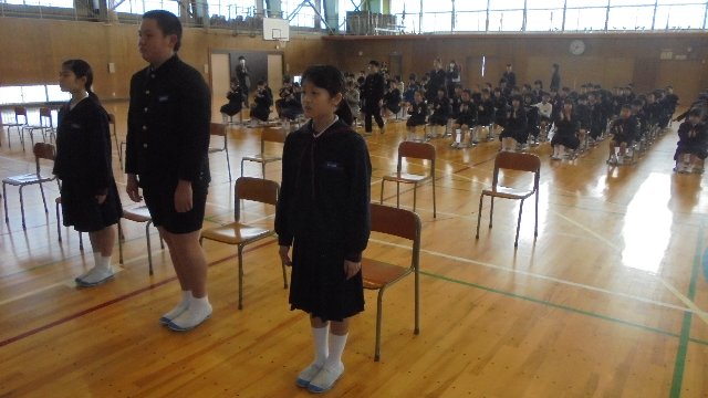 今日の2限目は、二日後に迫った卒業式の最終練習を行いました。卒業生も在校生も心を込めて練習することができました。こんな温かさが大切ですね。