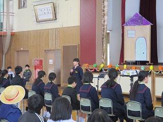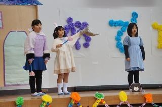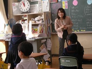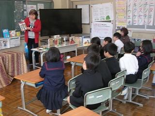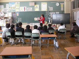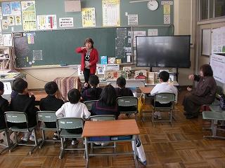 いつも読み聞かせをしてくれる、読み聞かせボランティア「やまんば」の皆さんが来校され、1年生に「ももたろう」など、日本の昔話の読み聞かせをしてくれました。今年度最後のお話会でした。読み聞かせを終えた後、やまんばの皆さんは、1年生の反応が良かったので、楽しく読み聞かせができたと話してくださいました。