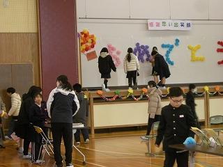 6限目には、3.4.5年生が会場準備を行いました。体育館がきれいに飾り付けられ、明日の本番がとても楽しみになりました。