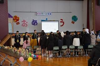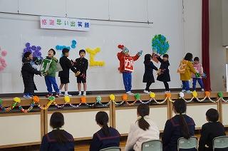 送る会のテーマ「感謝・笑顔・思い出」を意識して、お世話になった6年生に感謝の気持ちを表し、思い出に残る楽しい一時を過ごしてもらおうと1~5年生が一生懸命に練習を重ねてきました。6年生にその思いがしっかり伝わったと思います。