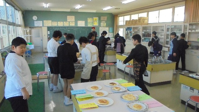6年生が家庭の調理実習で、お世話になった先生方にパンケーキを作ってくれました。とても美味しかったです。メッセージカードが添えられていました。来週は卒業式、さびしくなります。ごちそうさまでした。