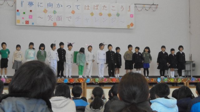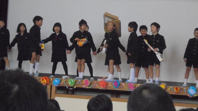 在校生がこれまでの感謝の気持ちを伝える。6年生がそれに応える。心地よいひとときでした。見どころがたくさんありました、くわしくはお子さんに聞いてみて下さい。衣装や小道具、ご家庭でのご支援に感謝します。それではさわりの写真を少し見て下さい。残りは行事コーナーで特集する予定です。
