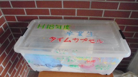 先日、10年前の卒業生がタイムカプセルを取りに来たことをお知らせしました。学校の物置には他の学年の者も保管されています。今年は作るのでしょうか。